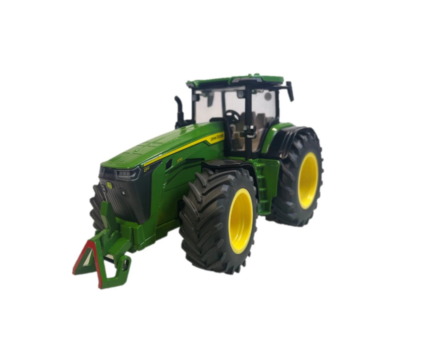 Detailed replica of the John Deere 8R 370 Tractor. The front coupling can now be removed, and replaced very easily by the front weight include. This provides additional play options to the functions of the rear coupling. The tractor can be steered using the steering wheel, simply by removing the cab. The front bonnet opens, providing a view of the mighty six-cylinder engine.
