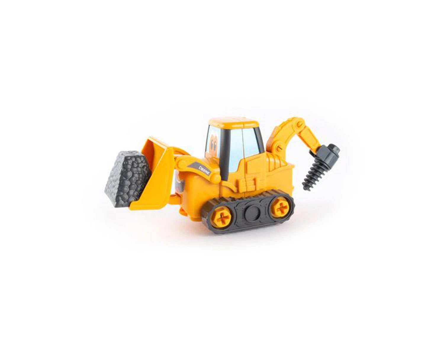 This John Deere Build-a-Buddy deluxe set features the backhoe Loader, screwdriver and interchangeable parts! Kids will have endless fun taking the loader apart and putting it back together again using the included screwdriver.