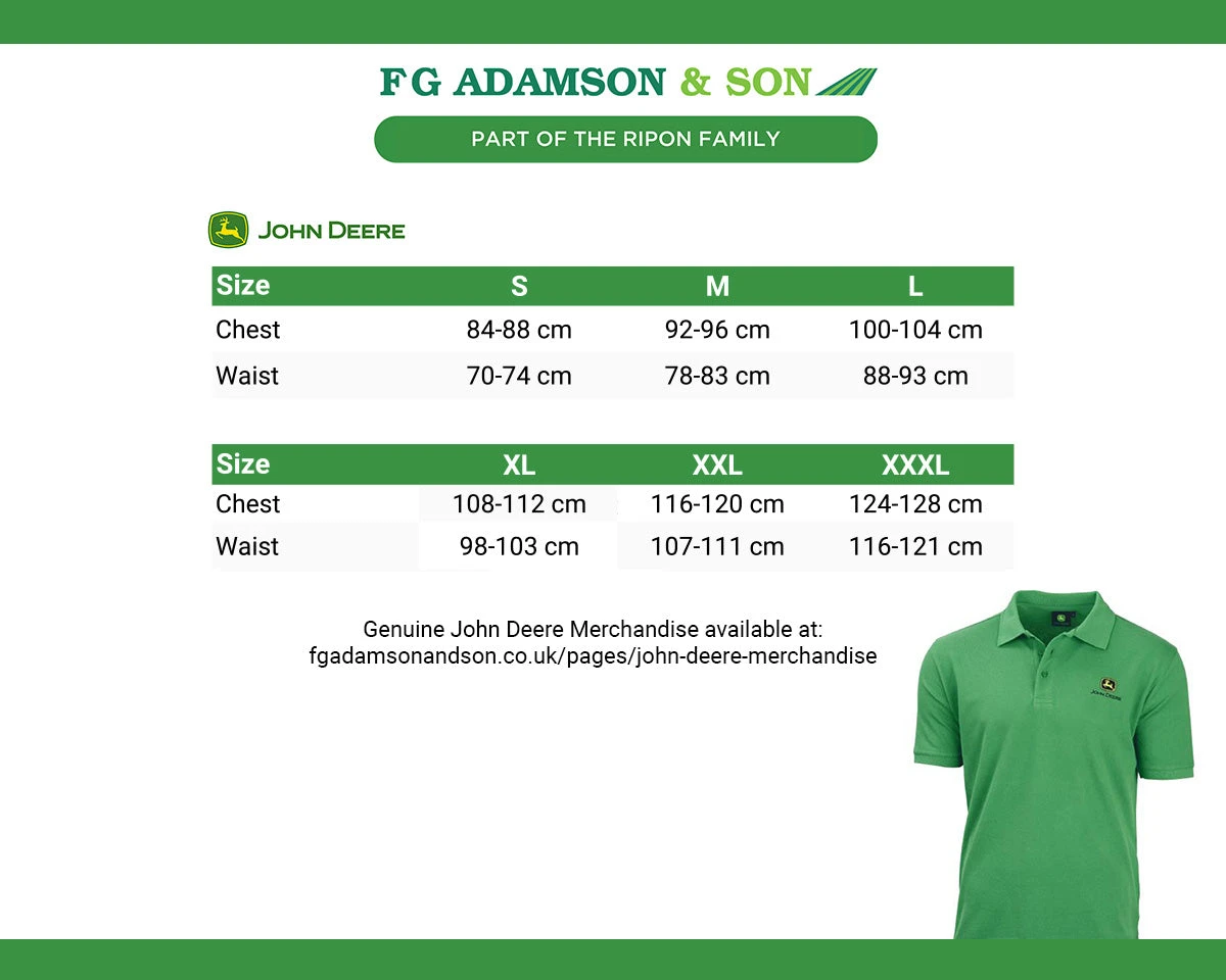 Classic John Deere green polo shirt in a piqué fabric with an embroidered John Deere logo on left chest.