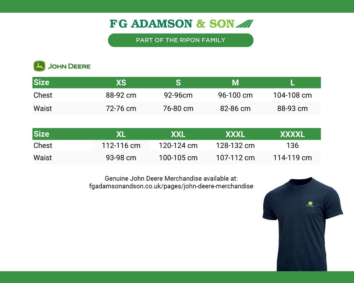 John Deere t-shirt in navy blue, featuring the trademark logo on the chest and back. A round neck style and a classic fit.